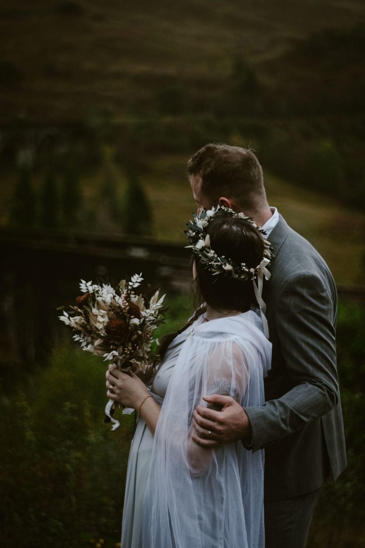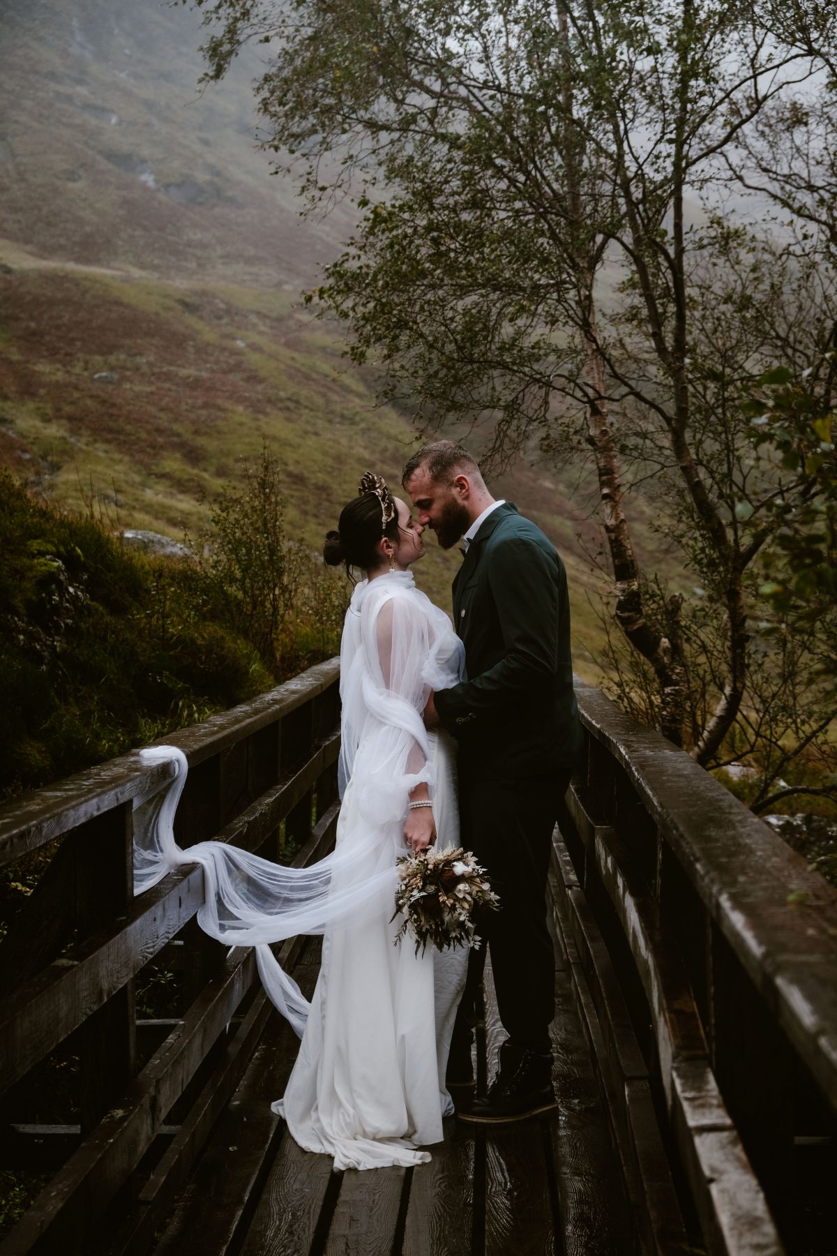 C’est l’un des messages forts de ce shooting d’inspiration : non, la pluie n’est pas l’ennemie de vos photos de mariage. Bien au contraire. Elle apporte une dimension émotionnelle aux images et renforce l’intimité. Tout l’esprit d’un élopement en Écosse se trouve sans doute dans l’acceptation de l’imprévu, le lien à la nature et l’ancrage des émotions dans l’instant présent.