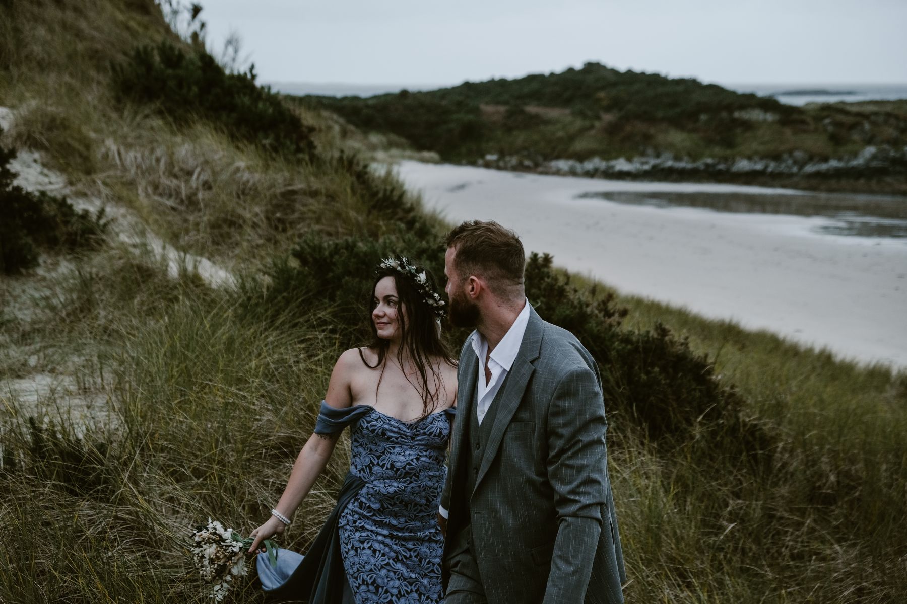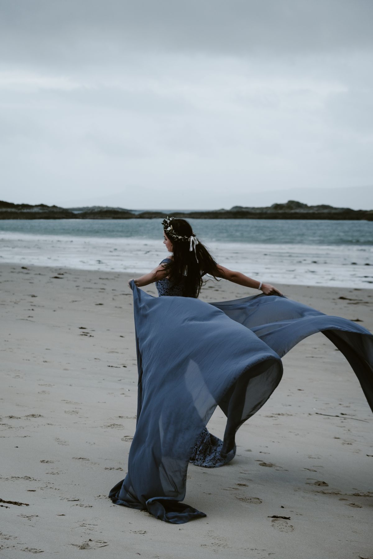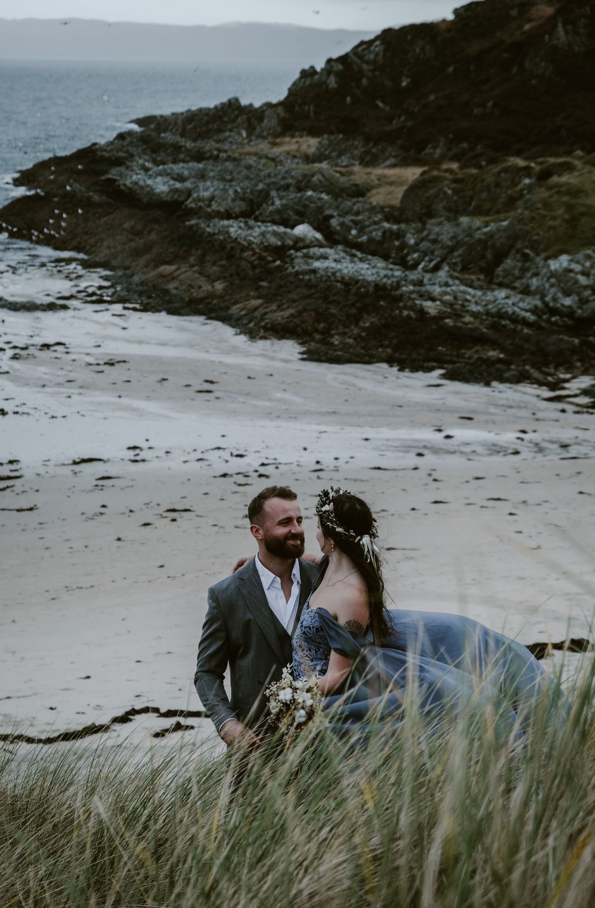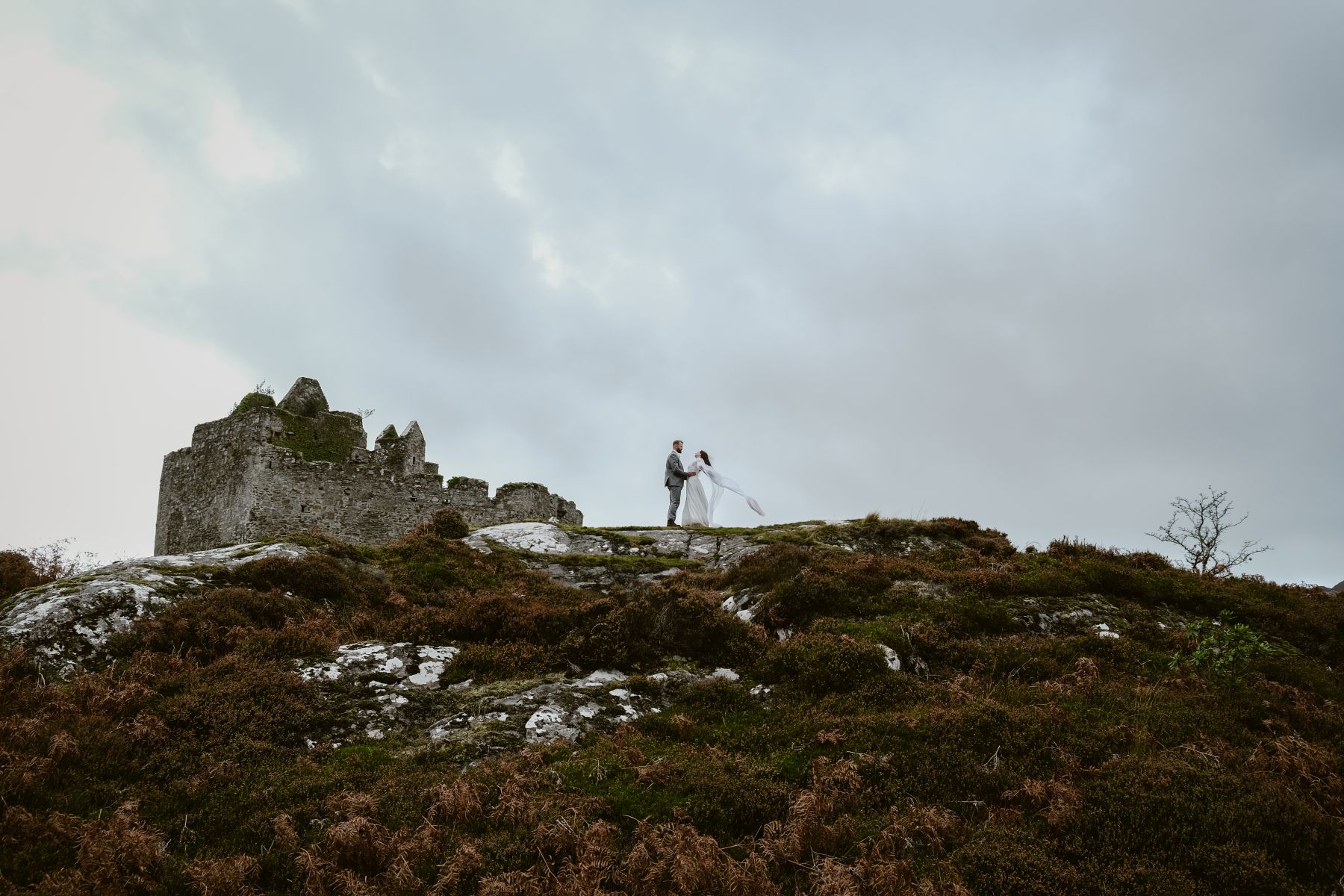Plus haut dans les Highlands, les ruines du Château de Tioram surplombent une plage aux allures cinématographiques. Seuls face à l’immensité, les mariés peuvent s’abandonner à leurs émotions en toute intimité, créant des images puissantes et profondément vivantes, à l’image de ce que permet un élopement en Écosse.