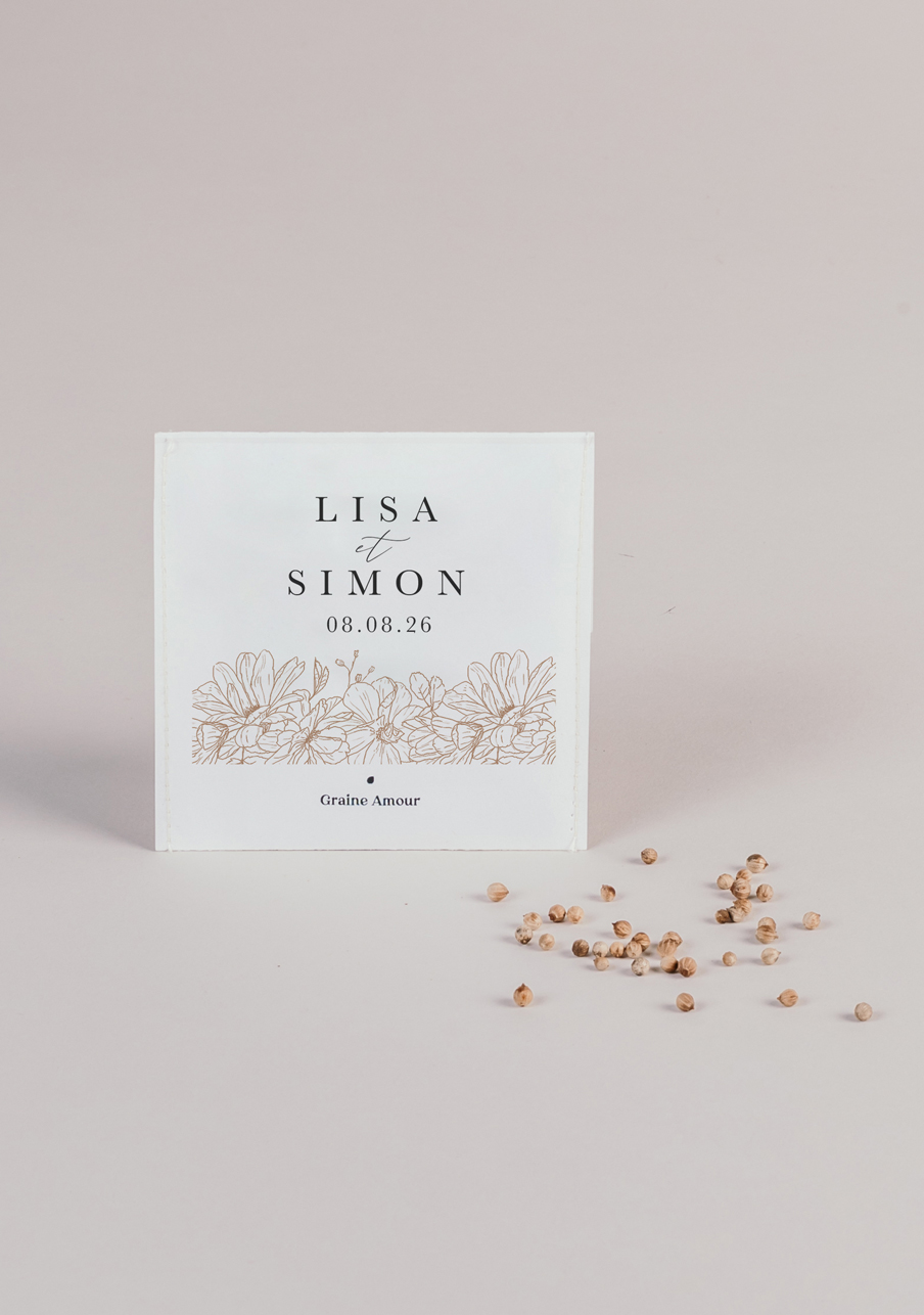 Petit Mariage Entre Amis est une marque française, née d’une envie de partage : proposer aux futur·e·s marié·e·s des objets à personnaliser et à offrir à leurs invités, comme leurs célèbres gobelets personnalisés. Pour cela, elle propose une gamme de produits et de visuels variés, souvent issus de collections originales ou réalisées sur mesure.